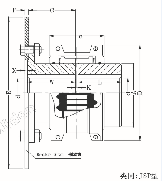 JSP系列 邁動彈簧聯(lián)軸器(盤制動式),是一種設(shè)計優(yōu)秀的非金屬性聯(lián)軸器,靠蛇形彈簧片來傳送扭矩。其減振功能好,運(yùn)用時間長,負(fù)荷變化量大,起動保險;傳動效力高,運(yùn)轉(zhuǎn)牢靠,噪音低,光滑好,設(shè)計簡潔,裝拆便捷,答應(yīng)有較大的裝配偏偏向。